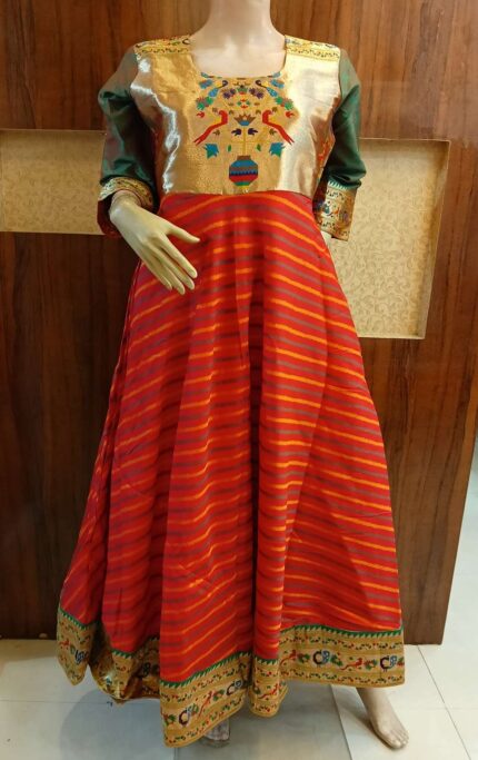 Semi Silk Paithani Long dress/Anarkali