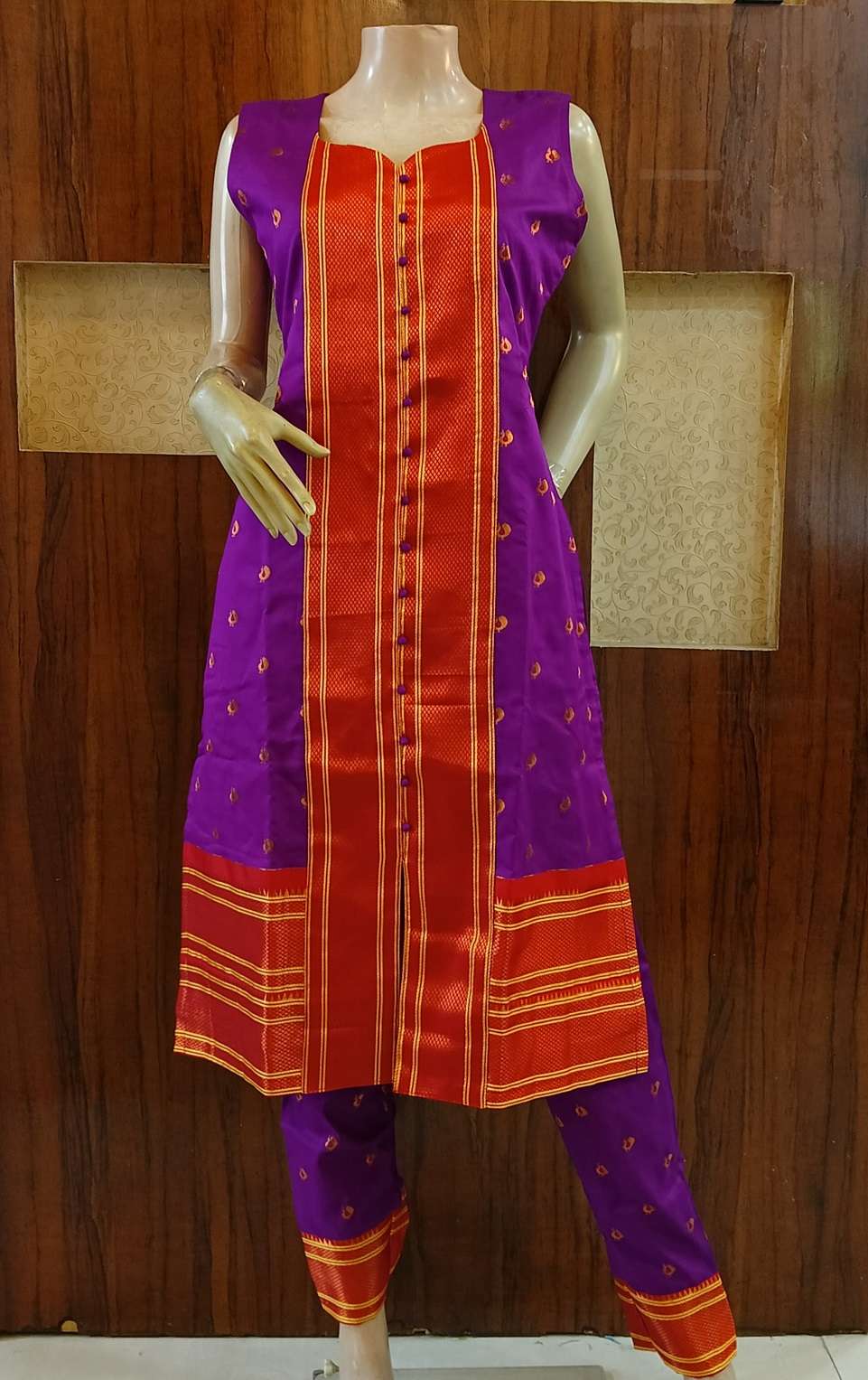 semi silk paithani kurti