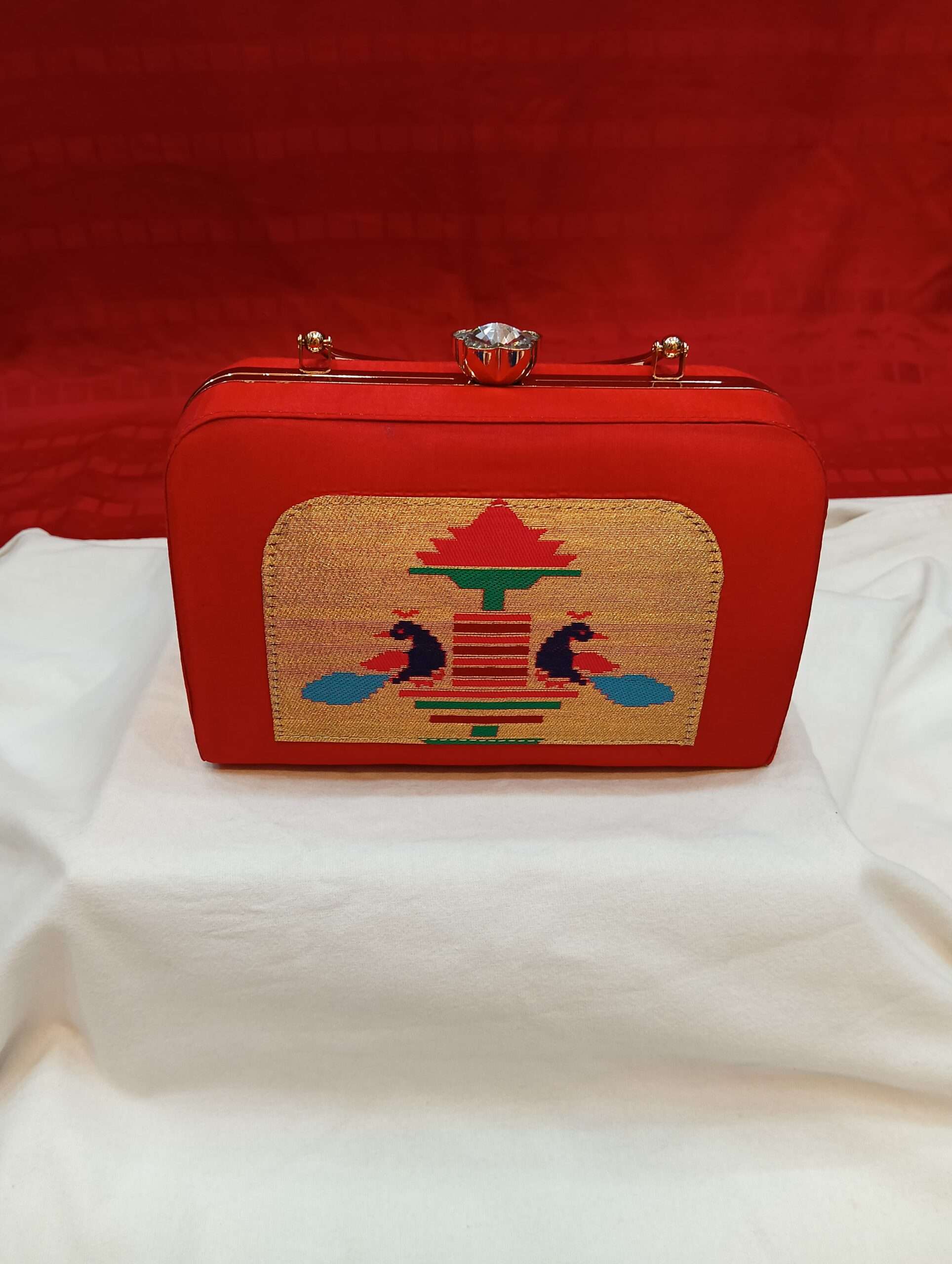 semi silk paithani box cluch 1