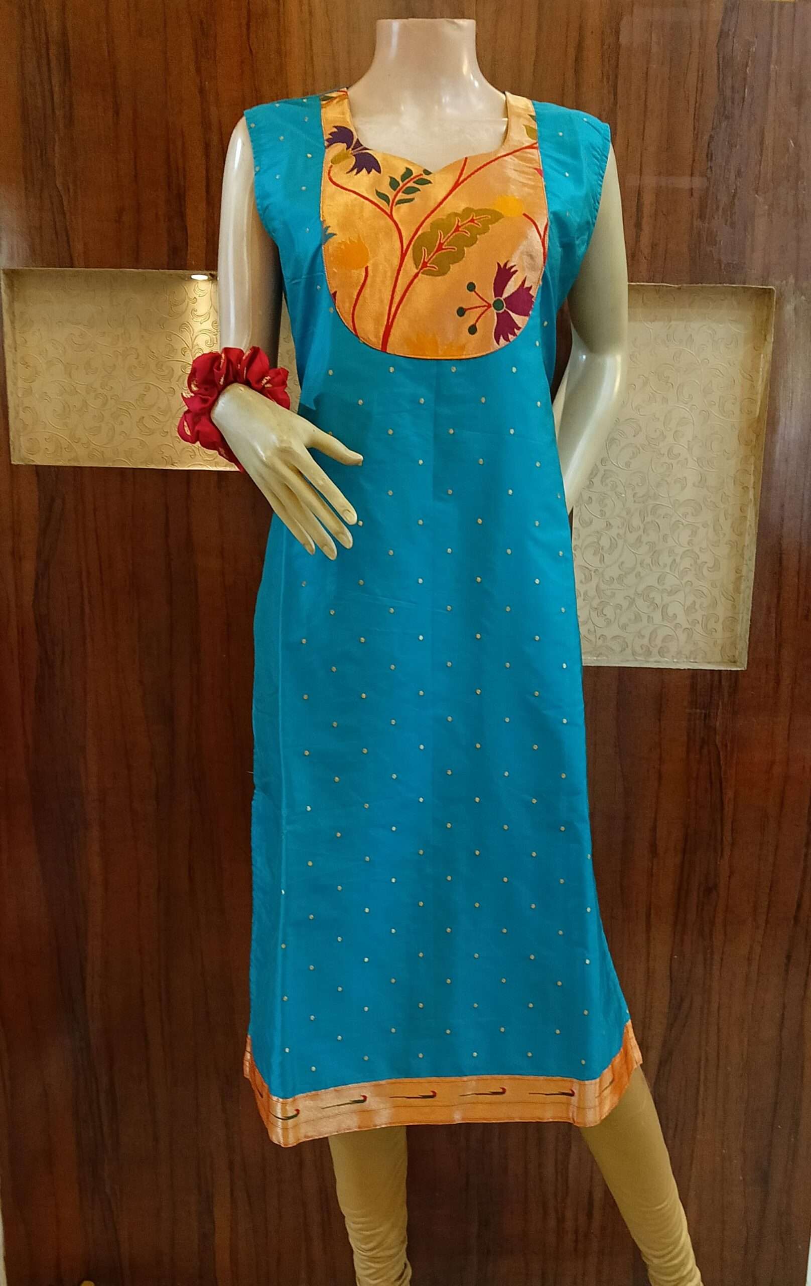 Semi silk Paithani kurties with cotton lining 8