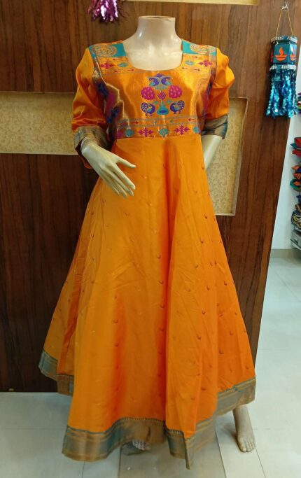 Semi Silk Paithani Long dress/Anarkali