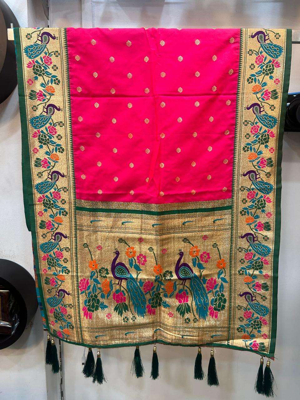 Semi silk Paithani shela with peacock borders