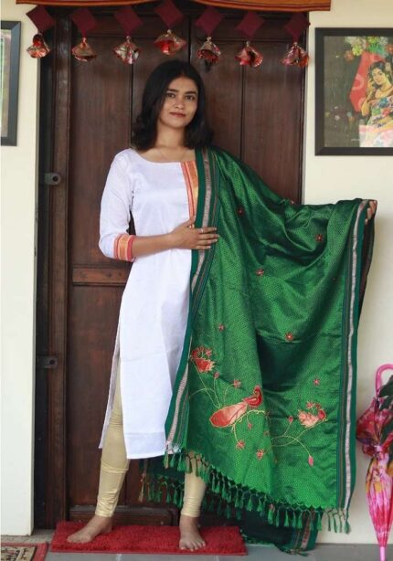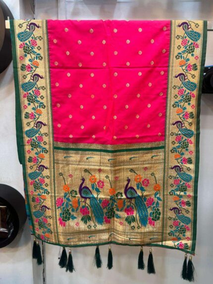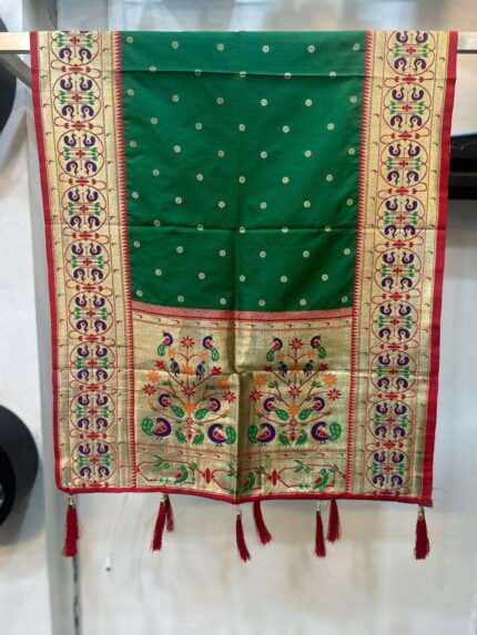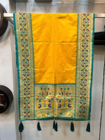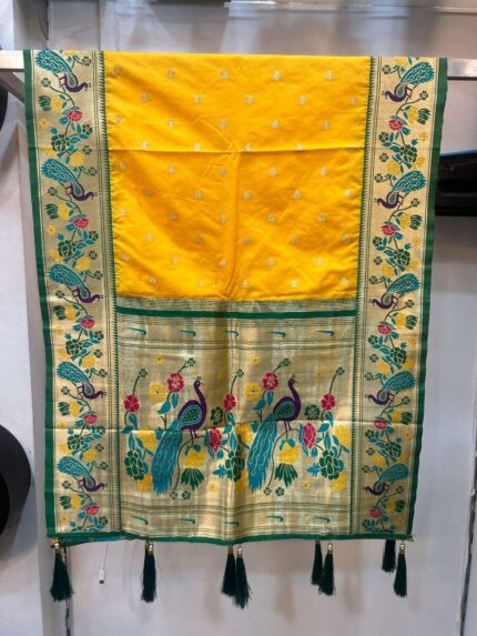 Semi silk Paithani shela with peacock border